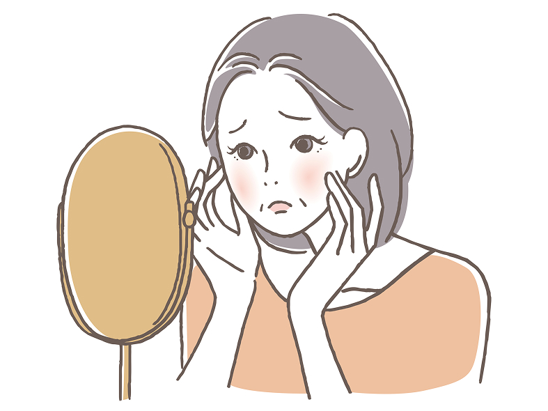 この年代は、紫外線ダメージの蓄積が一気に表面化し、シミが濃く目立ち始めます。さらに、ホルモンバランスの変化やストレスが原因で、肝斑(かんぱん)や肌全体のくすみが併発しやすくなります。